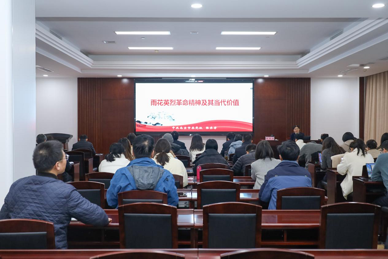 张教授作了题为“雨花英烈革命精神及其当代价值”的专题辅导,课程紧紧围绕雨花英烈“崇高理想信念、高尚道德情操、为民牺牲的大无畏精神”这一主线而展开,系统阐述了雨花英烈革命群体的典型特征、雨花英烈革命精神的核心内涵、历史成因以及当代践行。最后,张教授结合在主体班授课的长期经历,从坚持党校姓党、厚植科研支撑、搭建逻辑框架、精选案例材料、注重教学表达等方面分享了授课备课的心得体会,引发了大家的深入思考,得到了普遍欢迎。