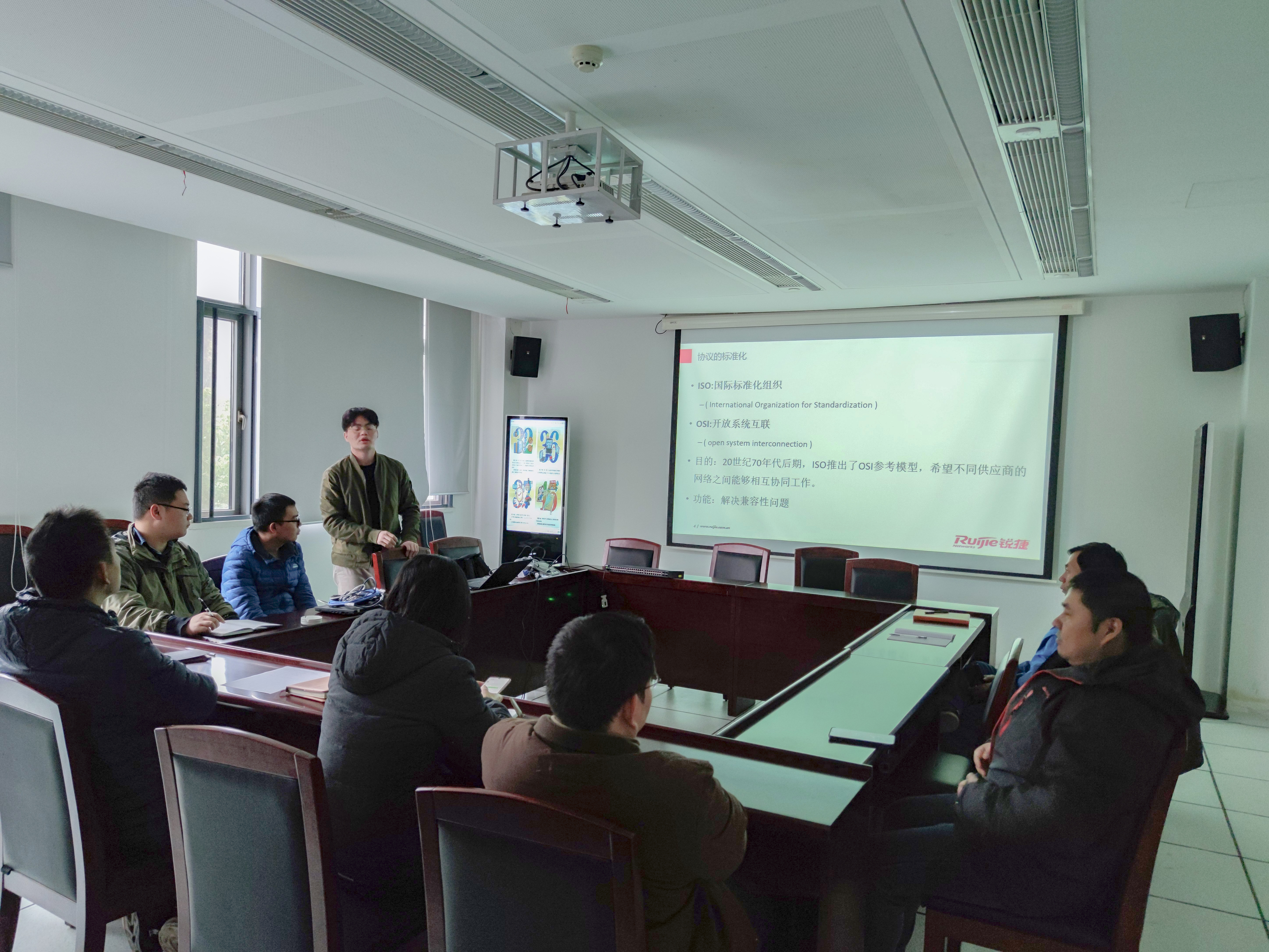培训分五个部分:网络模型讲解、交换机工作原理、锐捷设备的登录方式、CLI命令的常见操作和RGOS的文件操作系统。授课工程师深入浅出,边讲解边操作;参会人员认真听讲,并进行深入讨论交流。此次培训,提高人员技术水平,提升服务保障能力,取得了较好效果。