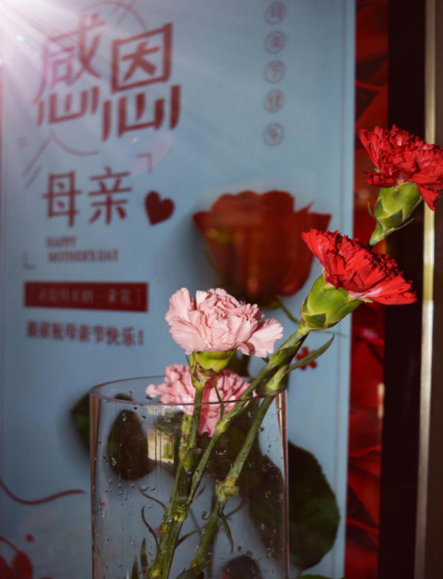 5月8日上午,为了传承中华孝道,在母亲节来临前,后勤服务中心为全校女教职员工在教职工餐厅精心布置了一场惊喜活动——“浓香康乃馨,寄情母亲节,为爱献花”。