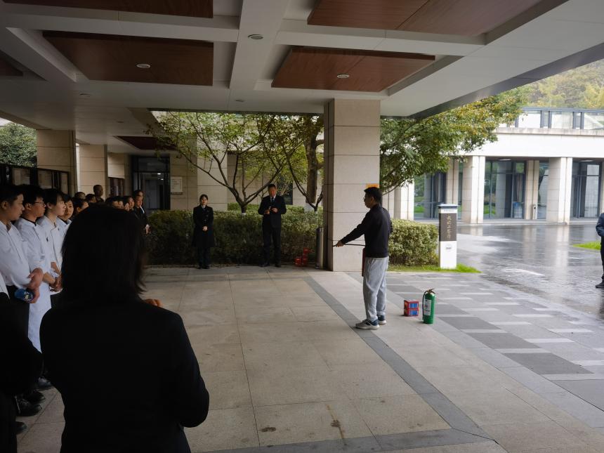 随后开展了一次酒店区域消防疏散演练。各小组根据拟定的消防疏散演习方案,各应急小组全部上岗到位,以酒店2楼客房为模拟起火点,组织全体人员进行模拟真实情况下发现火情并实施消防扑救、人员疏散、联动处置等突发事件演习。整个演练过程紧张有序,配合默契,提升了全体教职员工的应急处置能力。演习结束,随即开展了消防器材使用实操培训,模拟扑救初期火灾。