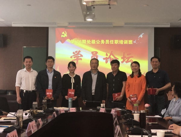 5月10日第76期处级公务员任职培训班举行结业式,市行政学院副巡视员、组织人事处处长俞国楠出席结业式,并为学员颁发结业证书。