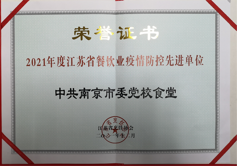 近日,校院食堂荣获省烹饪协会“2021年度江苏省优秀团餐单位”和“2021年度江苏省餐饮业疫情防控先进单位”两项殊荣。