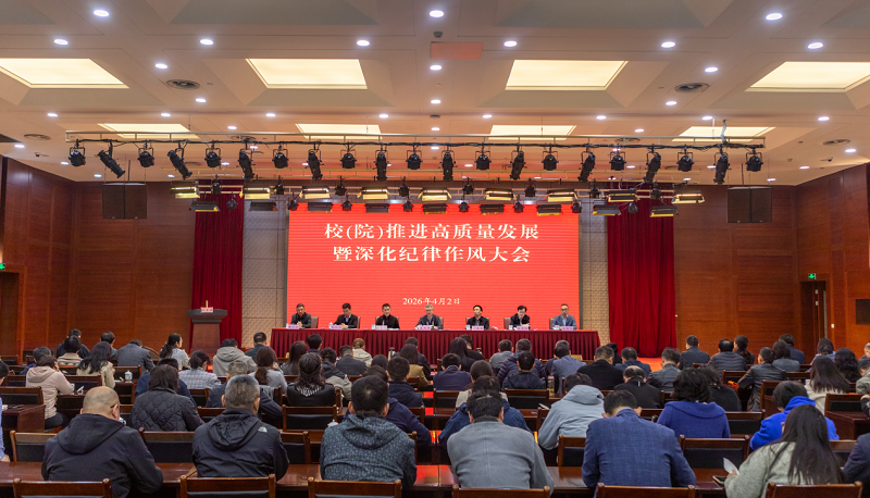 4月2日上午,校(院)召开推进高质量发展暨深化纪律作风大会。会议组织观看了警示教育片,传达了全市2026年高质量发展推进会精神,常务副校(院)长孟凡有围绕推进高质量发展暨深化纪律作风讲授专题党课。副校(院)长郭榛树主持会议,校(院)领导、市作风纪律监督员和全校教职工参加了会议。